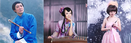 The orchestra brings along own soloists in the tour to demonstrate the typical sound of single instruments and also of singing. In the tour 2013 there will be a fluit soloist who plays the Chinese bamboo fluit (Dizi), a Guzheng player and a Suona player, all of these musicians are master of their instrument with overwhelming international experience, and they are awarded many times for their aptness. There are also two junior singers for the Chinese traditional vocal arts.