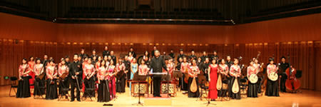 The orchestra is a big sinfony orchestra in Chinese costumes and plays in its program pieces of the Chinese classical music tradition. The orchestra plays on traditional Chinese instruments, of which the most important instruments are the Erhu, the Pipa, the Suona and the Guzheng, beside many others, above all the Chinese percussion instruments, beginning with the Great Gong to the small rattles and clappings.